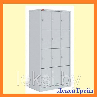 Металлический разборный шкаф из двенадцати ячеек. Шкафы ШРМ - 312 используются для хранения пакетов и сумок в крупных магазинах, личных вещей в раздевалках спортклубов и фитнес-центров.